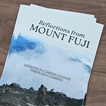 Designed and wrote a travelogue exploring career change through the metaphor of mountain climbing, incorporating personal reflections from my summit of Mount Fuji. The final booklet featured a minimalist esthetic with a soft colour palette and structured layouts. Created for a document design course to demonstrate my strong understanding of storytelling, layout, hierarchy, and typography. Created with Adobe Indesign.